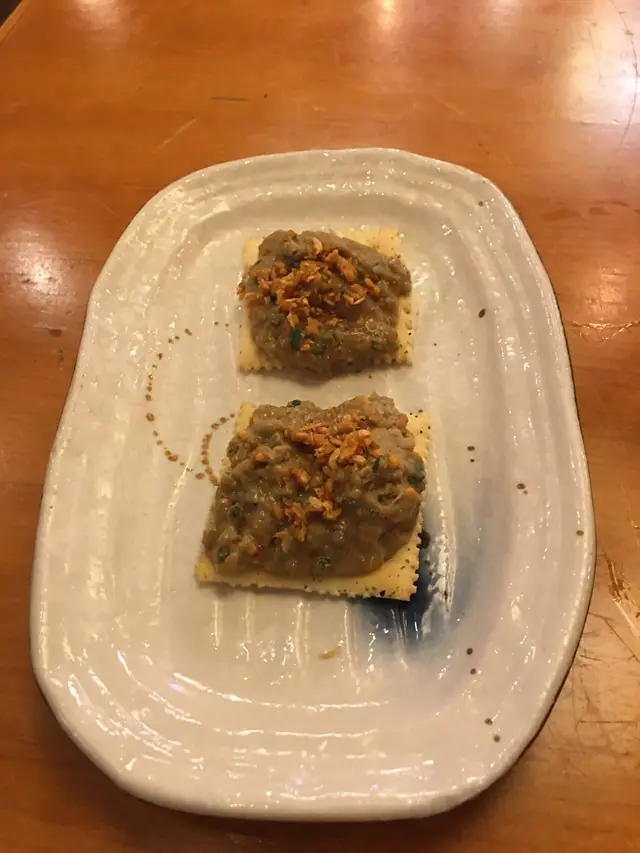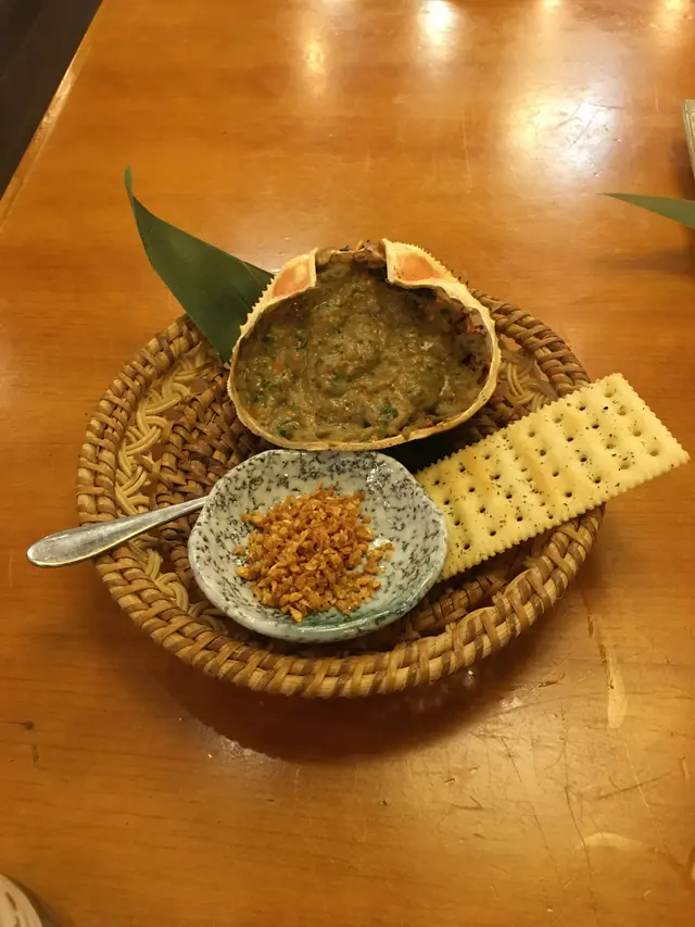 蟹膏/蟹肉/蟹籽/蔥花/鵪鶉蛋/清酒及味噌混合,放喺蟹殼上用火爐燒烤,煮出嚟香氣口感超級一流,回味無窮,食過超級返尋味😋😋😋😋😋