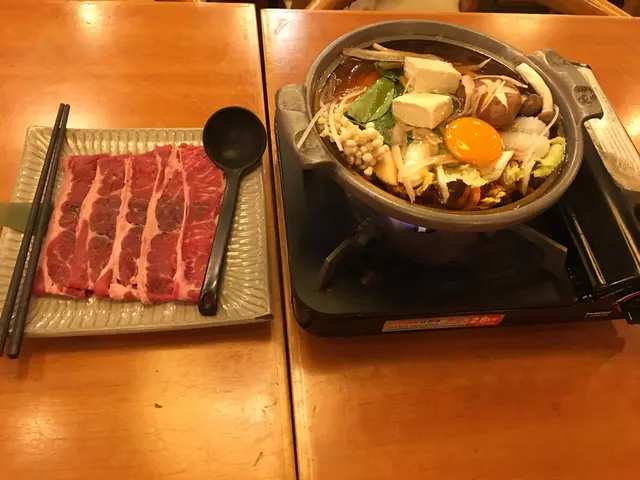 高級牛肉片🤩,加多個好多嘢食嘅日式火鍋(大蔥、豆腐、冬菇、蟹爪菇、金菇、芋絲、粉絲、菜⋯⋯)