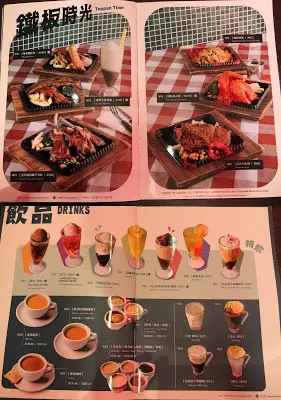 餐牌圖文並茂,照片裡的佈景都花了不少心思,單是那格子檯布,已滲出不少懷舊元素。