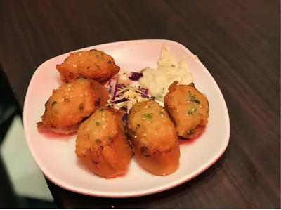 磚頭焗飯外形巨大,麵包磚內充滿飯粒之餘,頂部更舖蓋著大大隻軟殼蟹,十分吸睛。麵包磚邊緣焗得金黃帶焦香,而軟殼蟹炸過,吃起來酥脆香口;沾上咖喱汁吃,滋味無比。