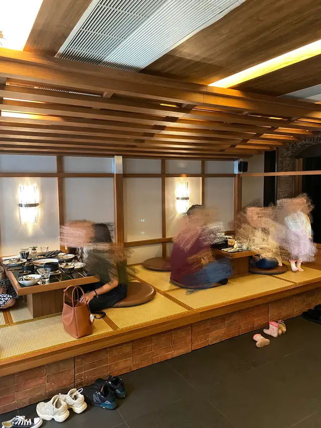 環境:最吸睛既一定係門口既榻榻米,不過今次坐唔到。但好好彩都俾我地坐到店內第二個打卡位😬,後面既mosaic窗影相好靚。空間感亦夠大,非常舒服😌