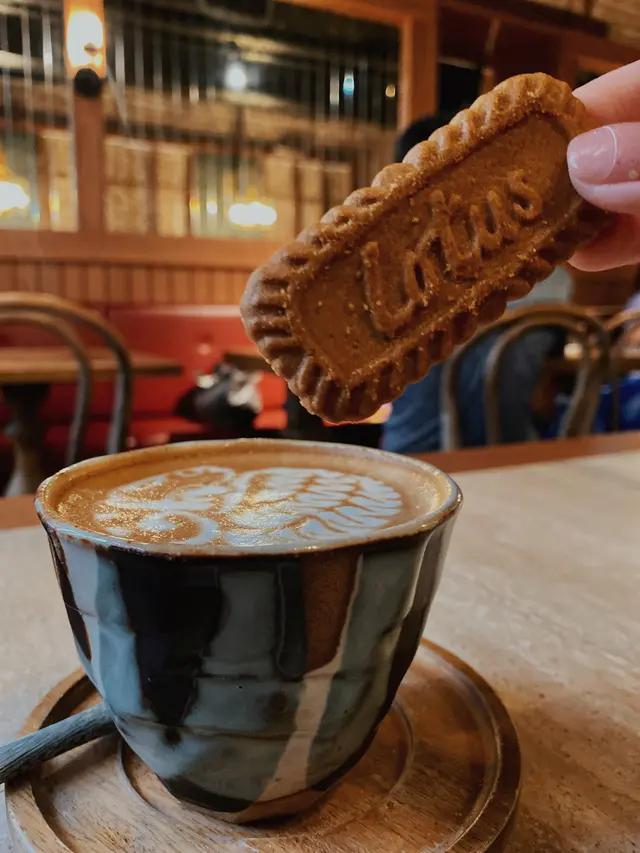 一上台就被佢個杯吸引到,同店內既復古裝修好襯🫶🏻!Latte完美呈現lotus餅乾既焦糖咖啡味,蘸上隨杯附上既lotus餅乾,perfect~