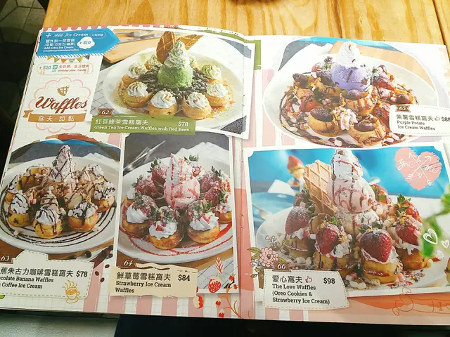 完美的晚餐,怎少得了甜品呢? 我們點了粉紅夢幻的草莓雪糕窩夫,絕對要在雪糕溶掉前,把握時間拍照。窩夫是4個心型組合而成,不得不讚是每塊窩夫上都有士多啤梨,讓我們每口也充滿士多啤梨的香甜。
