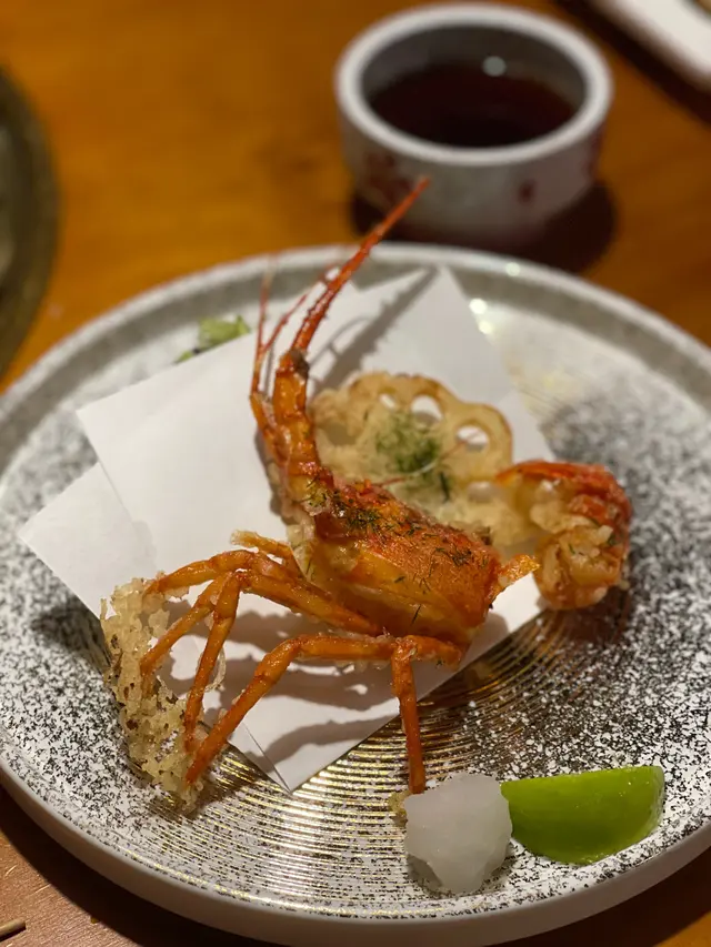 軟殼龍蝦天婦羅炸皮好薄身,龍蝦鮮甜突出