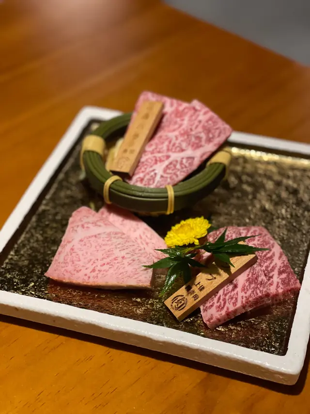 A5宮崎櫻花牛三品(前腿肉、三角腩、內後腿肉)油脂相當靚,猶如雪花!侍應為我哋介紹唔同嘅部位,再幫我哋燒熟每片和牛👍🏻