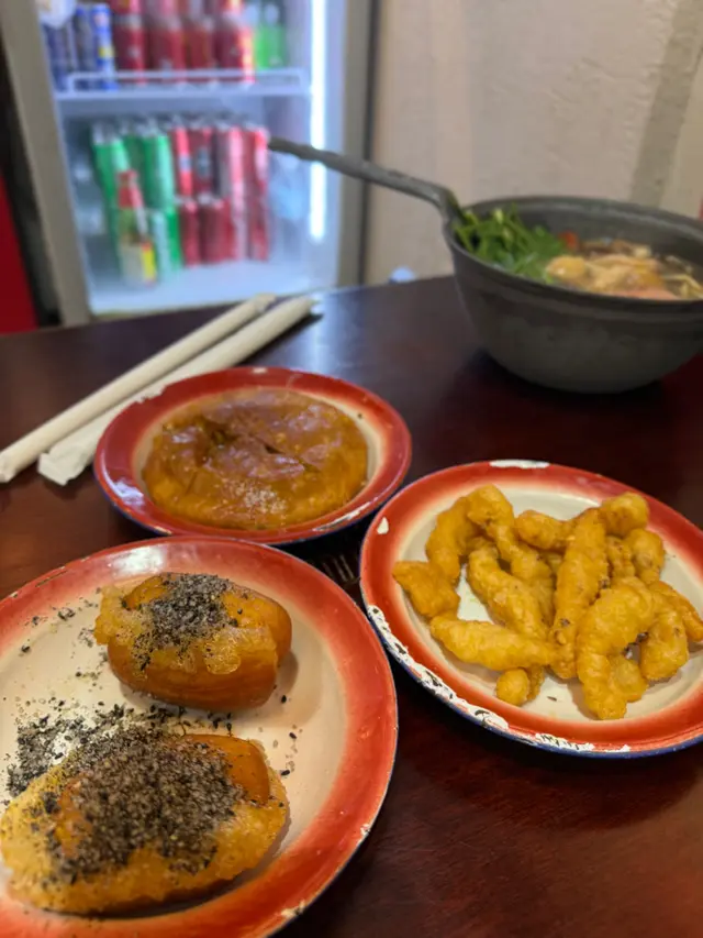 🍢【小食系列】 ▪️糍粑油條:即叫即炸!油條超脆口,夾住煙韌軟糯嘅糍粑,口感無得輸~點埋煉奶真係邪惡到極點! ▪️牛肉餡餅:外皮煎到金黃香脆,入面牛肉餡juicy又惹味,咬開仲有肉汁爆出嚟~