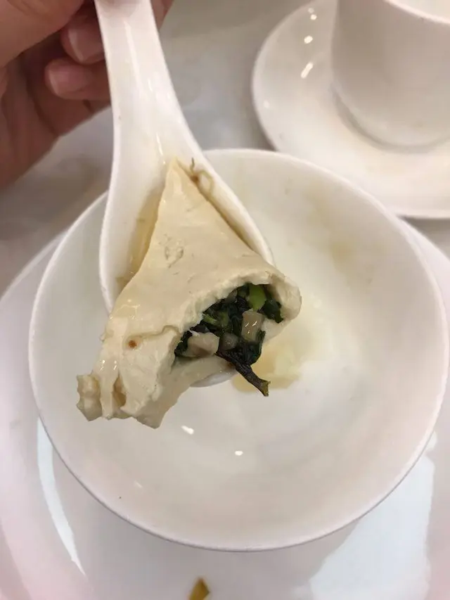 呢味菜都幾考功夫!將件豆腐變作餃子皮,裡面有d雪菜、好似有筍等等。老人家無牙都食到!