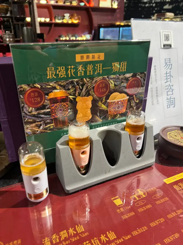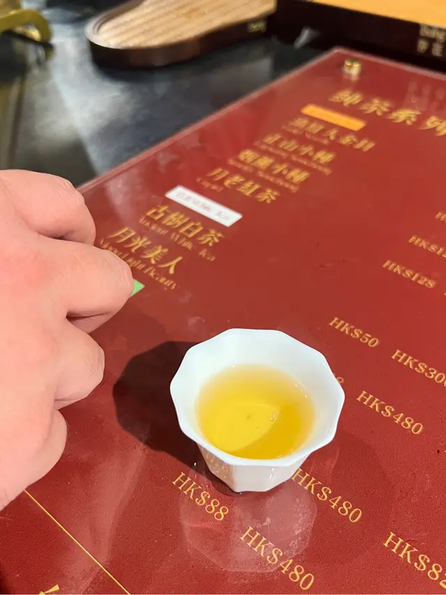 店員以5g茶葉, 即埸5沖5泡, 取第2泡茶供我哋即埸試飲, 整杯茶以5泡茶為一整杯。