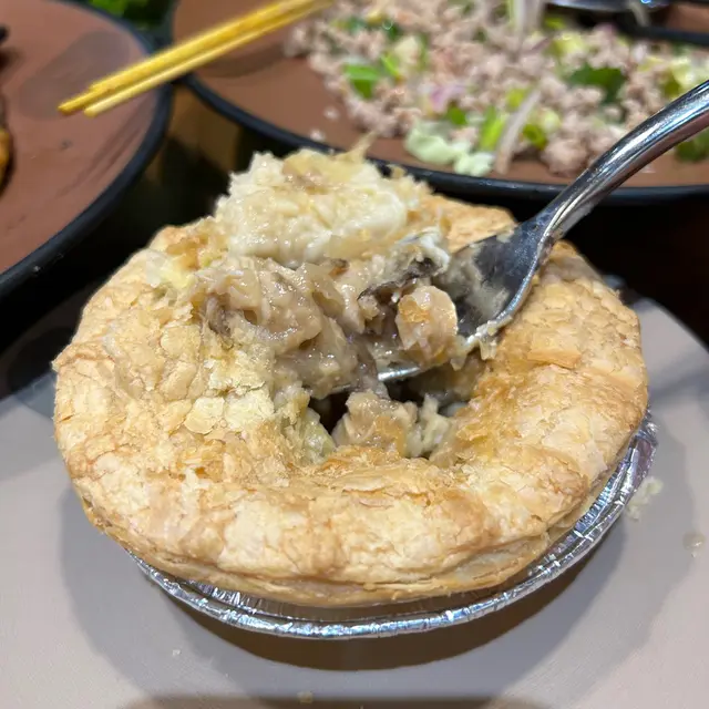 外皮酥脆香口,但餡料略為不足,忌廉汁有啲小,令到個批有啲乾,蘑菇唔知係咪落錯估好大陣冬菇味,而雞肉一粒粒,有啲(鞋)