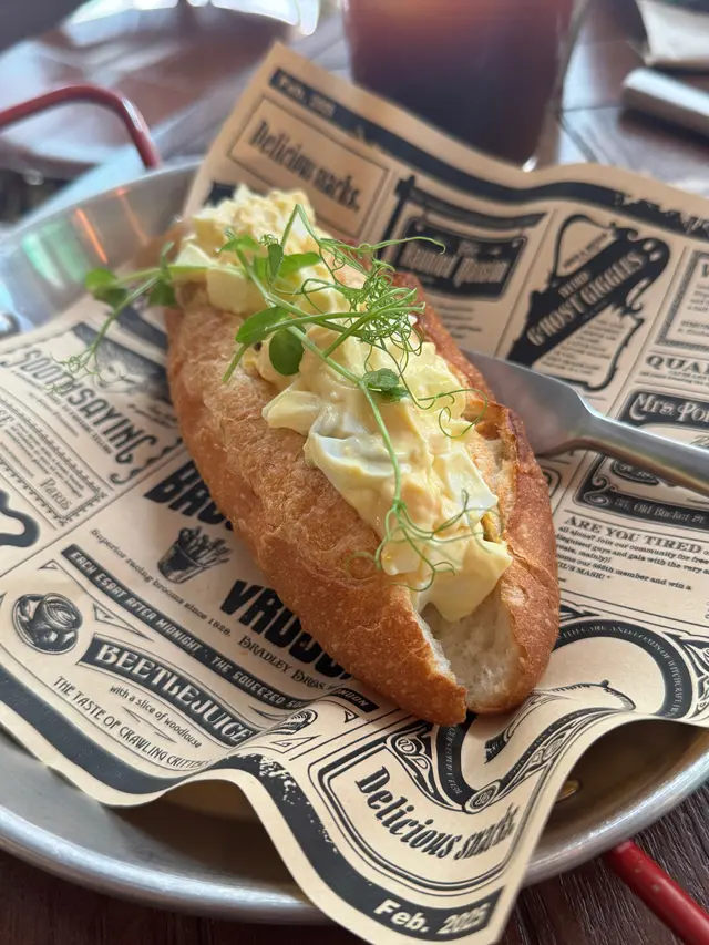 蛋沙律法棍則展現法式優雅:水煮蛋剁碎後拌入蒔蘿與美乃滋,填充進酥脆巴吉的法棍,每口都碰撞出質地交響曲。