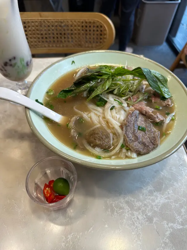 **湯底真係無得輸!** 飲得出係長時間熬製,牛味濃郁帶香料香🌿~牛筋煮到半透明,入口即化;牛丸彈牙爆汁,河粉份量足,大滿足!