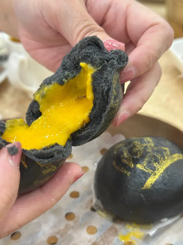 黑金嘅外皮印上金色「盈館」二字,外皮柔軟,內餡一咬帶出濃郁的黃金流沙奶黃,甜而不膩,十分滿足😍