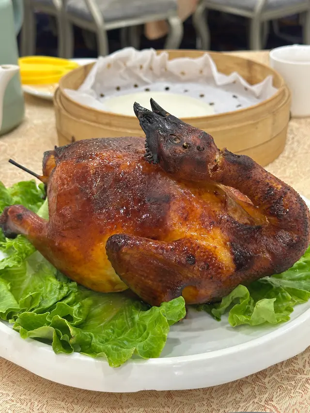燒雞都係即叫即做,製作需時,上碟果陣熱辣辣❤️🔥雞肉外焦內嫩,有提供手套同剪刀,自行將雞撕件,撕件後見到入面有大量香草🌿,有種獨特嘅風味😝