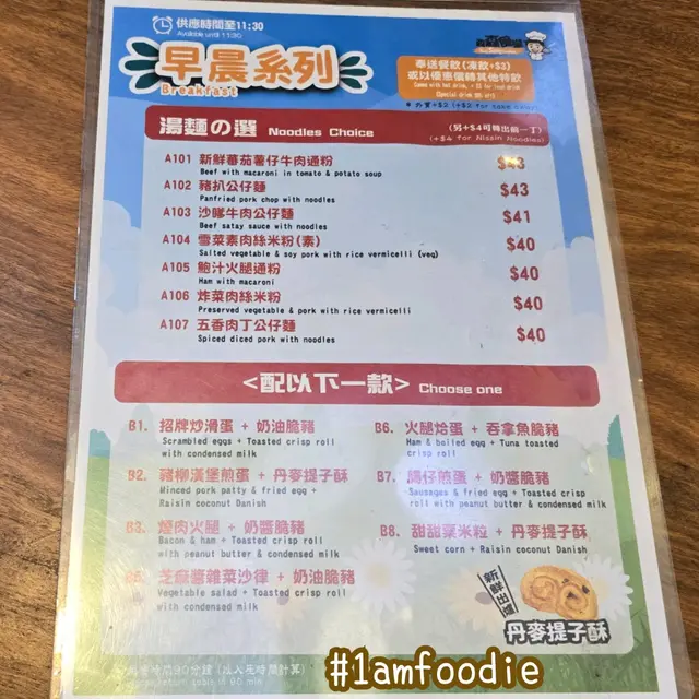 #1amfoodie #hkig #foodie #hk #hongkong #hongkongfoodie #hkfoodblogger #foodiehk #topcitybiteshk #hkeat #hkfoodstagram #thatfoodiething #instagood #love #hkigfood #hkfoodlove #hkfoodblog #globaleats #foodieman #1am東區 #北角 #森森食堂 #早晨系列 #湯麵之選 #新鮮蕃茄薯仔牛肉通粉 #腸仔煎蛋 #奶醬脆豬 #熱奶茶 #輕盈之選 #牛奶粟米片 #雙煎蛋 #雙漢堡扒 #杏仁霜 #1am1724 #1ambackup