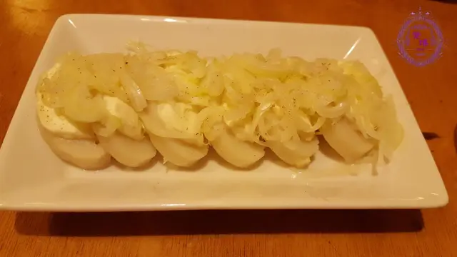 【白魚蛋芝士】是這晚的亮點,原以為是燒物,端上來時才知是蒸煮,心感不妙,魚蛋腥加芝士臭再加洋蔥的澀味,那能入口?!誰知我跟惡人竟一口接一口,欲罷不能!魚蛋彈牙,芝士香濃,洋蔥清甜,讓我想起電視廣告中那句:『Perfect Match!』(HK$68)