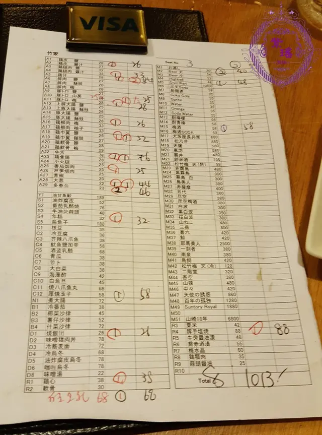 連加一服務費,埋單HK$1,013
