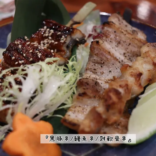 串燒: 黑豚串 (HK$38) / 鰻魚串 (HK$52) / 雞軟骨串 (HK$25)