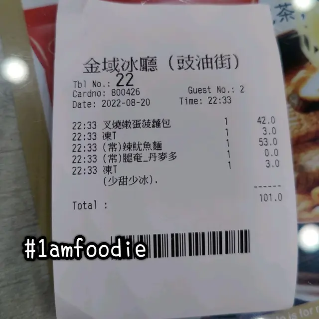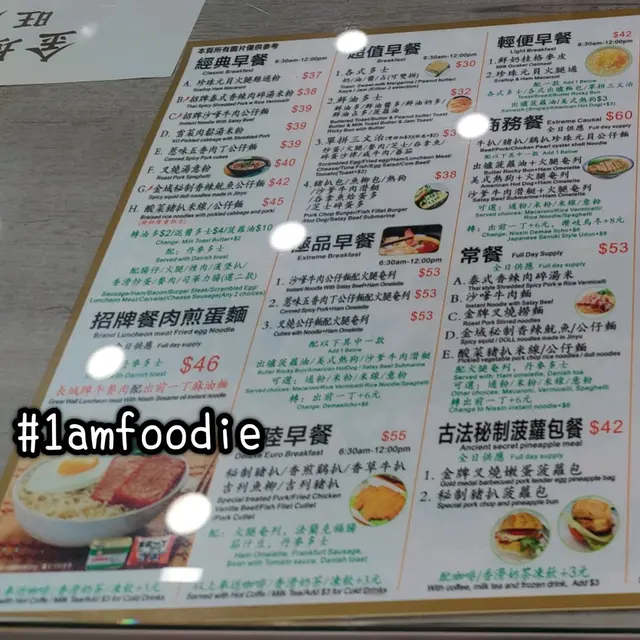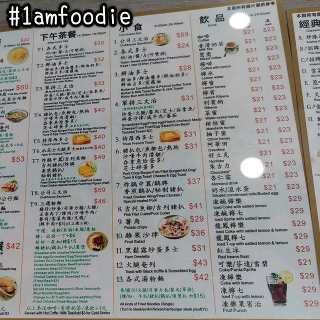 而道歉哥就食 $53 嘅「酸菜豬扒公仔麵」配「火腿奄列」同「丹麥多士」加 $3 飲 「凍奶茶」,啱啱道歉哥喺我隔離所以問到,佢對個麵冇乜感覺,不過就記得件厚多士幾好食。張單夾埋 $101 又唔算過份嘅,旺角充飢嚟講。。。