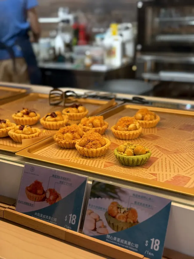 開心果果仁撻牛油皮好似曲奇咁脆,撻皮係用開心果做,食落都有淡淡開心果味,上面有幾粒夏威夷果仁,焦糖包著增加咗甜味,夾埋撻皮一齊食好夾😋