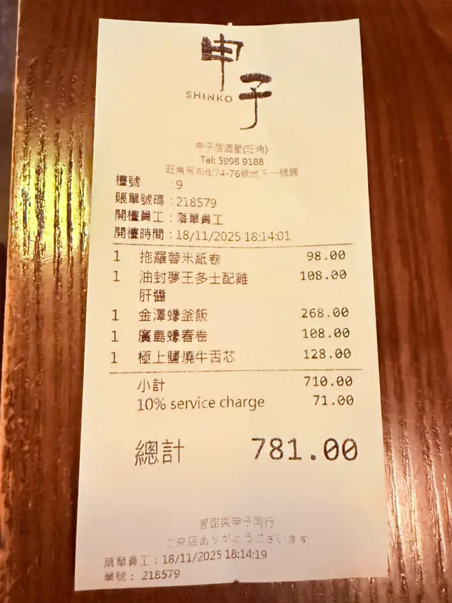 ♡人均消費: $781 @ 2