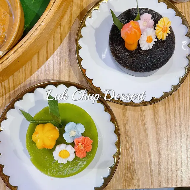 甜品個名叫露楚甜品,露楚可能係老撾既詞彙,其實係斑蘭糕同芝麻糕。個糕上面有啲豆蓉花做點綴,好睇又好食。