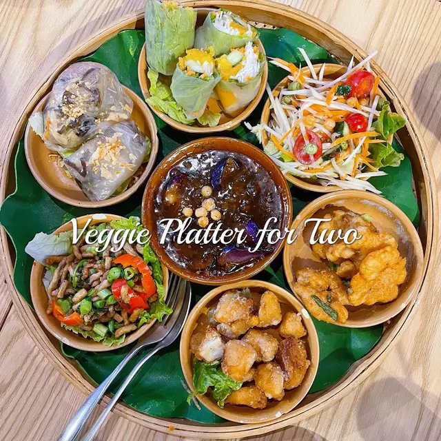 香芒米紙卷係點花生醬食,出乎意料之外咁夾。香脆素雞粒係將杏鮑菇切粒拎去炸,整到好似炸雞粒咁,幾好食。茄子醬個樣成個魚香茄子咁,但原來佢個味係偏酸酸甜咁,都幾得意。另外仲有青木瓜沙律、手打素魚餅、老撾蒸粉卷同素肉碎包生茶,全部都色香味俱全,值得encore。