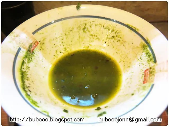 在湯底方面,由於這是菠菜汁豚骨湯,所以湯底也變成墨綠色。(喝一口湯底,豚骨的味道偏重,沒有很重的菠菜味。)