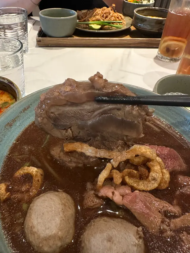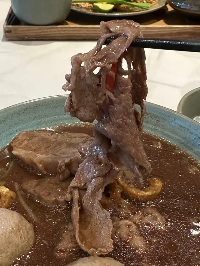首先,泰式和牛船麵(Thai Wagyu Beef Boat Noodles)好大份! 湯底醇厚,和牛肉質軟嫩,仲有爽彈牛九,每一啖都係味道嘅享受😋。
