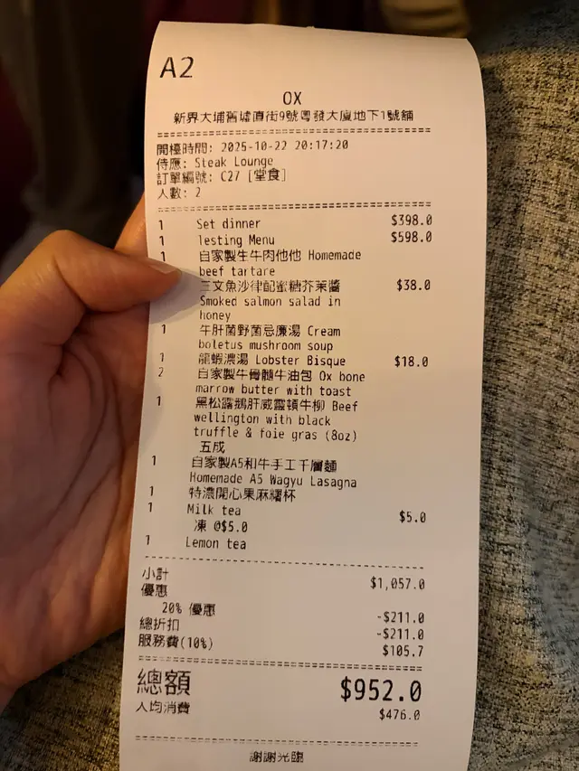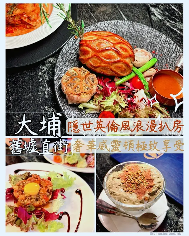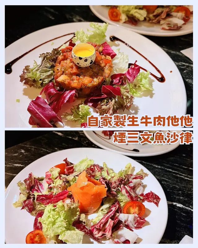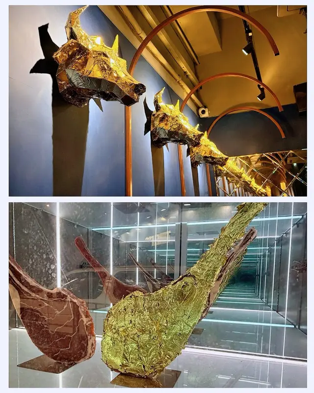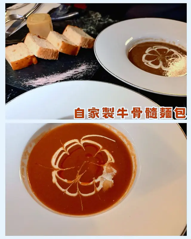 水晶吊燈映照著金色牛頭雕塑,充滿藝術感嘅空間令人瞬間沉浸於奢華氛圍中~主打高質牛扒嘅Set Dinner套餐由$398起,無論係紀念日慶祝定浪漫約會都咁適合✨套餐均包含餐湯前菜,每道都令人驚喜!