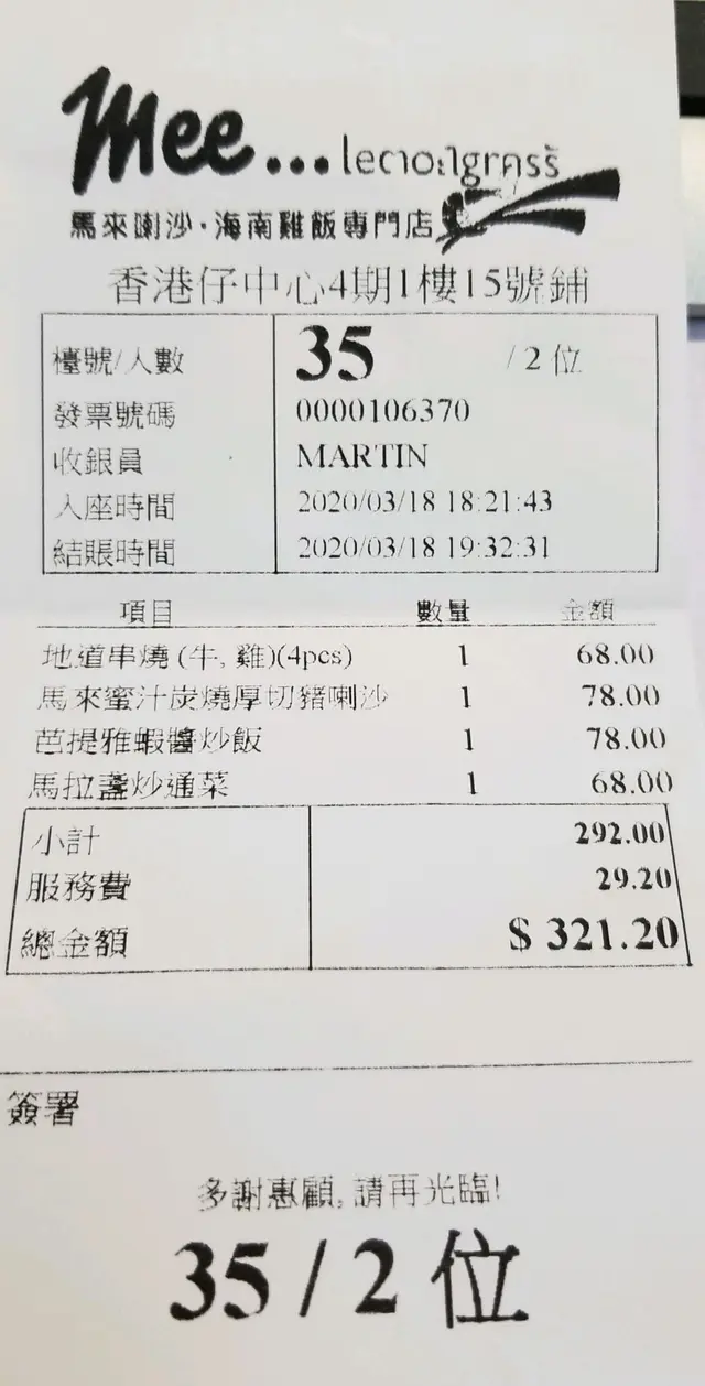 結算321元,飲品另計33元,合共354元,人均177元,有點貴,但就食到堅飽,本來想叫拖鞋芒果糯米飯,都食不下了。