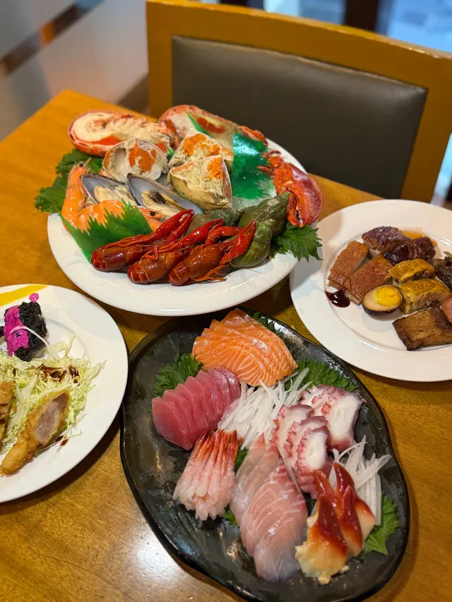 ✰ 海鮮~冰鎮海鮮包括了肥美的蟹腿、龍蝦🦞、爆膏麵包蟹、青口、蝦🦐,還設有𝐬𝐚𝐬𝐡𝐢𝐦𝐢和壽司櫃檯,提供三文魚、吞拿魚、甜蝦、北極貝等