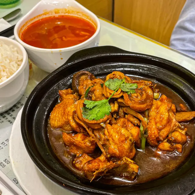 送上枱個陣雞煲係出曬煙,勁香🤩而且份量都幾大,有幾隻鮑魚係上面,整體黎講賣相好吸引!熱辣辣既雞肉同冬菇都煲得好入味🤤配料方面仲用左洋蔥、香蔥、蒜頭、薑,洋蔥尤其入味,我將D洋蔥全部食曬😆呢份雞煲撈埋白飯食真係好滿足!呢個價錢又有鮑魚又有雞,都幾抵食!