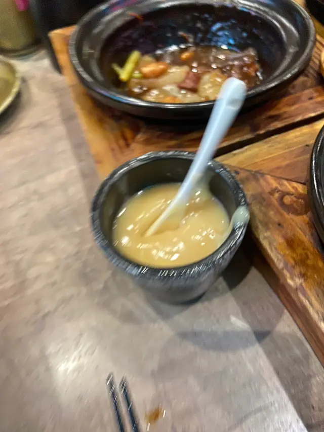 而家已經好少食到臘腸同潤腸飯😹 臘腸我覺得都幾有鹹香,不過潤腸始終係內臟食落感覺有少少腥味…個人唔太喜歡。不過煲仔飯最正係煲底入面嘅飯真係有飯焦粒,脆卜卜好好食!
