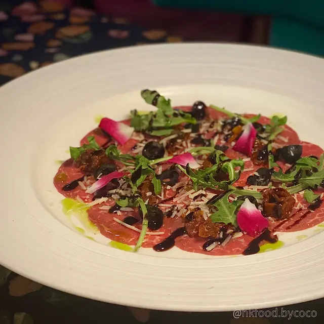 和牛片配搭橄欖油芝士,加上少量蔬菜,口感清新