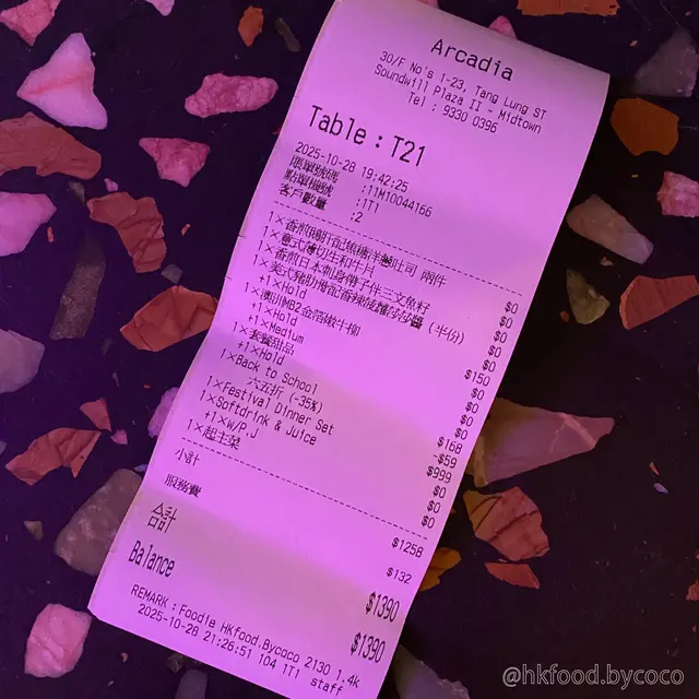 。 Arcadia Festival Dinner Set ($999 - 原價$1699)