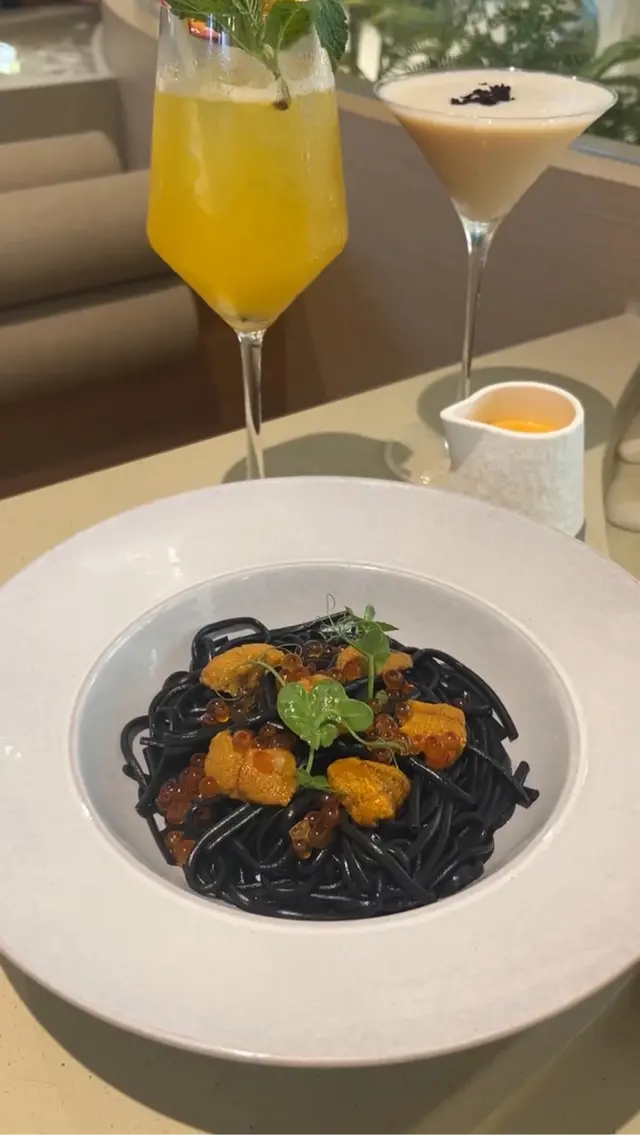竹炭烏冬你平時食開嘅烏冬Q彈d有咬口,倒入加拿大🇨🇦濃郁海膽+加北海道香濃海膽醬再加入三文魚籽,醬汁鮮味好rich 又好掛汁