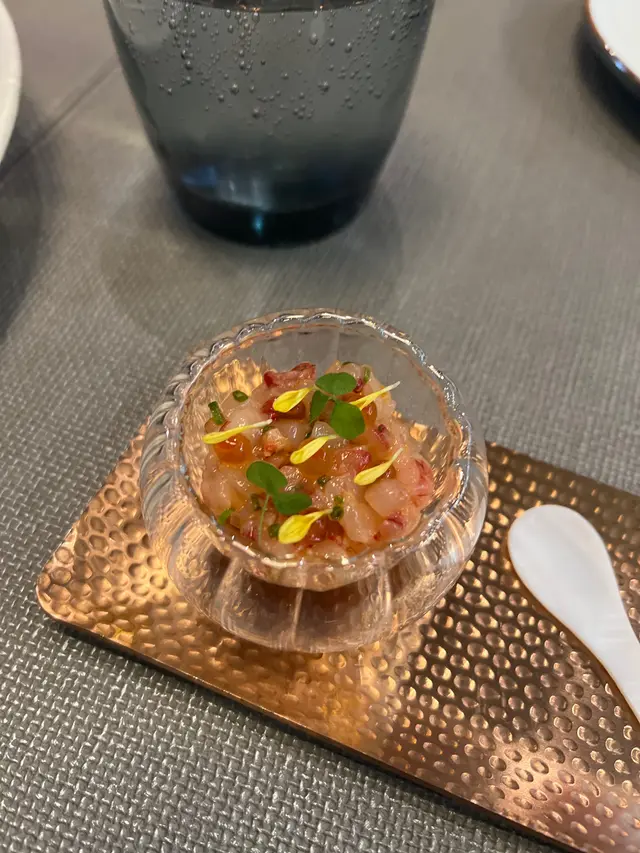 Raw Red prawn tartare|Red Prawn Spaghetti