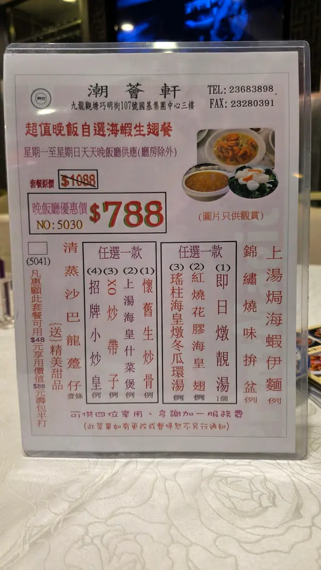 ❤海蝦生翅餐 $788 (4人)