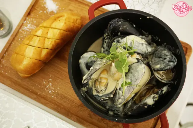 忌廉味沒有完全覆蓋青口本身既味道, 調味方面掌握得很好。而最令我驚喜竟然係伴碟既蒜蓉包, 外脆內軟, 麵包入面鬆軟而且被塗上牛油同埋蒜蓉, 令包中帶點濕潤, 反而更食到更香既蒜蓉味