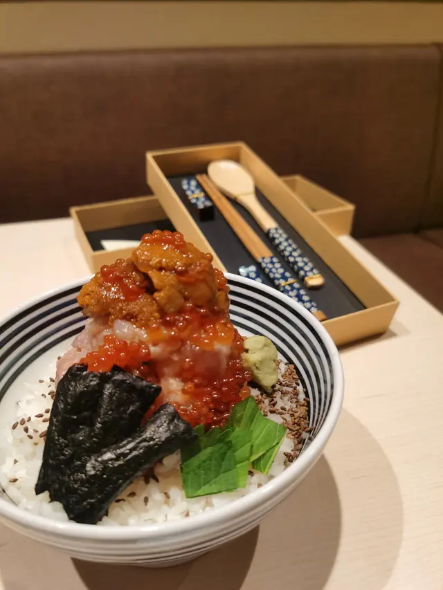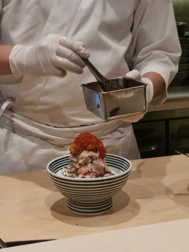 食材包括:海膽、紅雪蟹肉、金槍魚蓉、鮭魚子、貝類、赤蝦、魷魚、金槍魚等多款不同海鮮。