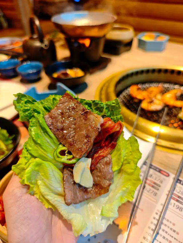 主題主打日本A4+和牛,每片都係人手修走多餘脂肪,薄切到剛剛好,燒完之後入口即化,油脂香喺個口裡面爆開,和牛愛好者一定忍唔住encore多幾轉!安格斯牛小排都唔輸蝕,人手處理過,筋膜同脂肪比例靚到呢~ 燒到外脆內嫩,點少少蒜片鹽醬已經無得頂。