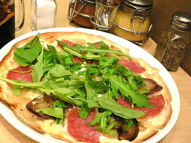 主菜德式薄餅,餅底頗香脆,但個人不太喜歡吃茄子,而火箭菜本身又有點苦澀,不過整體來說都算不錯。
