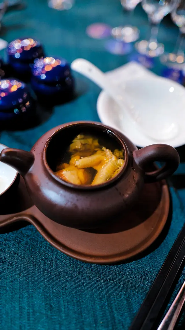 這道湯品以小巧的茶壺盛裝,充滿了儀式感。