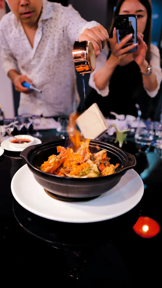 再經過珍酒火焰的加持,香氣更為濃郁。蟹膏豐腴,蟹肉鮮甜,好食