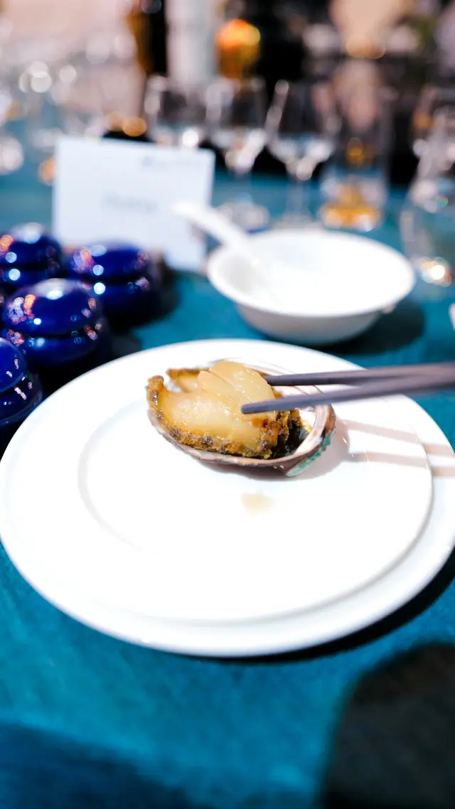 頭盤六頭鮑魚經過珍酒的冰鎮處理,口感Q彈緊實,