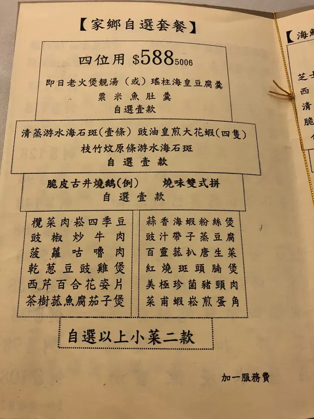我們一行四人,一見到有個四位用的「家鄉自選套餐」,價錢合理、食物都有很多選擇,所以就決定選這個套餐。