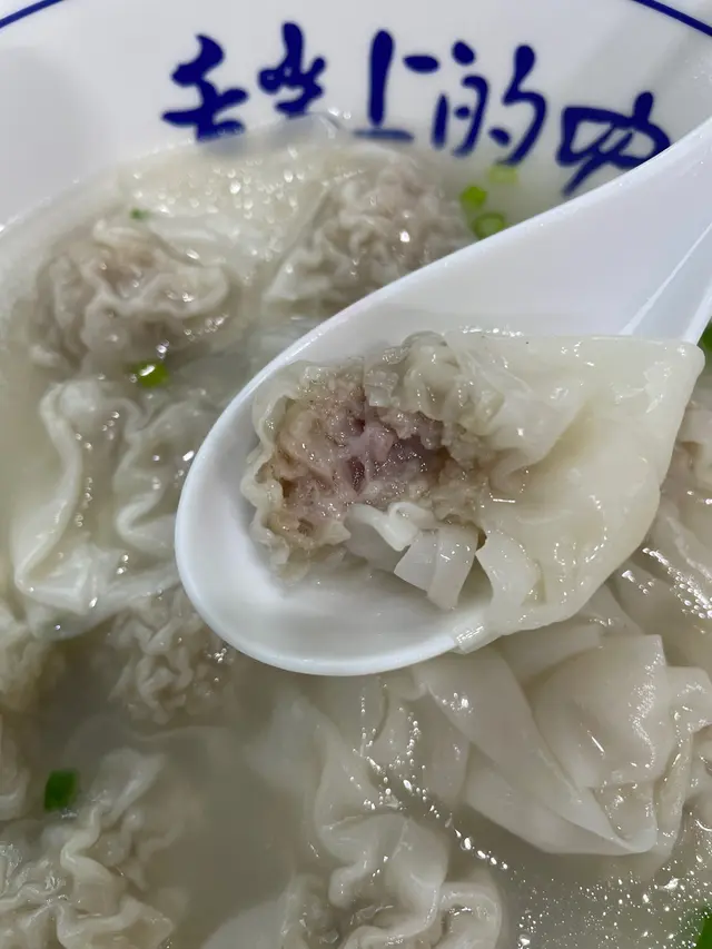 下單幾分鐘熱騰騰的餛飩端上來,聞湯沒有任何鮮味,只有味精沖水的味道。盛起一顆小餛飩,尺寸不算,皮算滑且薄。一口咬下去,???什麼東西!吃不出肉味,反而像是在吃廉價澱粉香腸的感覺。