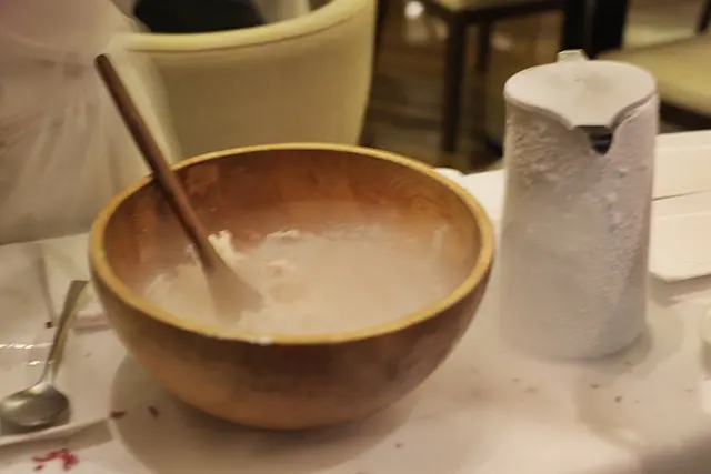 那兩塊檯布上的污漬實在礙眼又感覺不衛生,我們忍無可忍出聲要求服務生把檯布換掉。以為換檯布不會出什麼問題,錯了,服務生來拿走了有污漬的檯布 後,把我們的刀叉就放在檯面上,然後一直沒有行動來鋪一塊新的檯布。我們又忍不住招一位服務生來表達我們受到特別對待,全場只有我們一檯沒檯布喎 ....囧! 終於,有人來鋪回一塊檯布給我們。嘆為觀止,這好好歹歹也是一家酒店中的西餐廳啊。