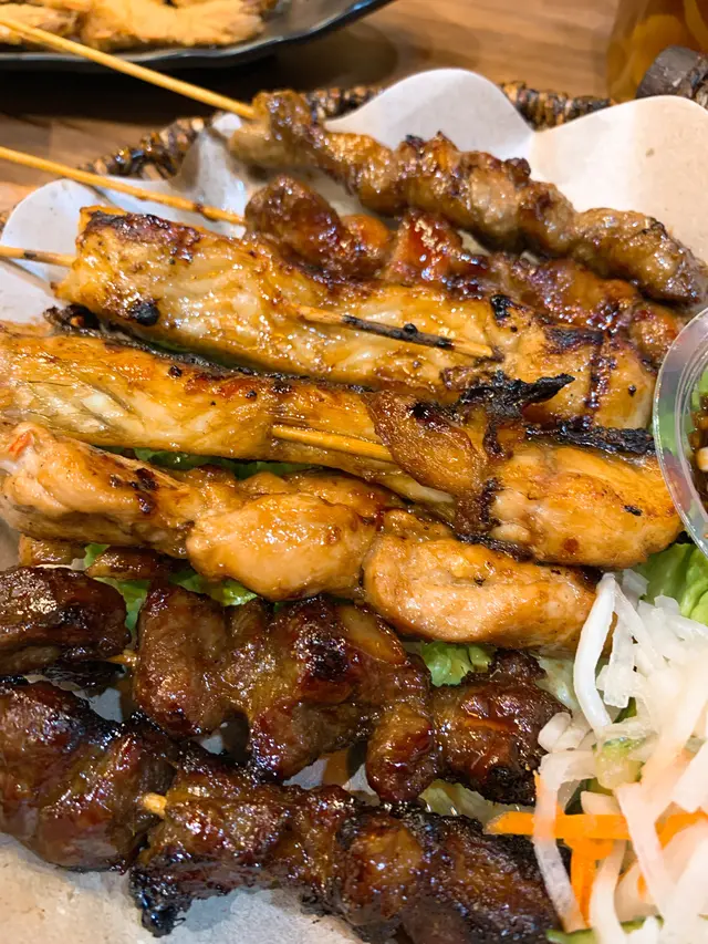 串燒拼盤。有牛,雞,魚同羊。個魚串燒好好味,我諗應該係銀雪魚。