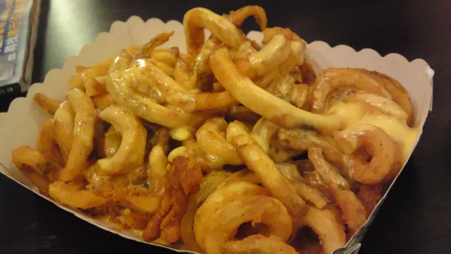 Curly cheese fries**** - 一見到覺得好似唔夠cheese喎, 所以加 $8要extra cheese佢就比咗一杯溶了的chadder cheese我dip, 超肥.